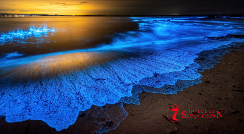 El resultado es un espectáculo interactivo: cada ola que rompe en la orilla brilla en la oscuridad, y si entras al agua, cada movimiento de tus manos o tus pies deja una estela luminosa, como si estuvieras nadando en un cielo estrellado.